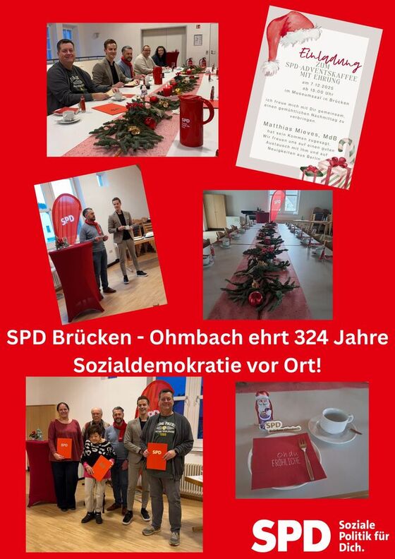 Am 7.12.2025 traf sich der SPD-Ortsverein im Museumsaal zu einem geselligen Adventsnachmittag. Bei leckerem Kaffee und Kuchen wurden langjährige Mitglieder geehrt. Der Ortsverein freute sich auch über den Besuch von Matthias Mieves, MdB.